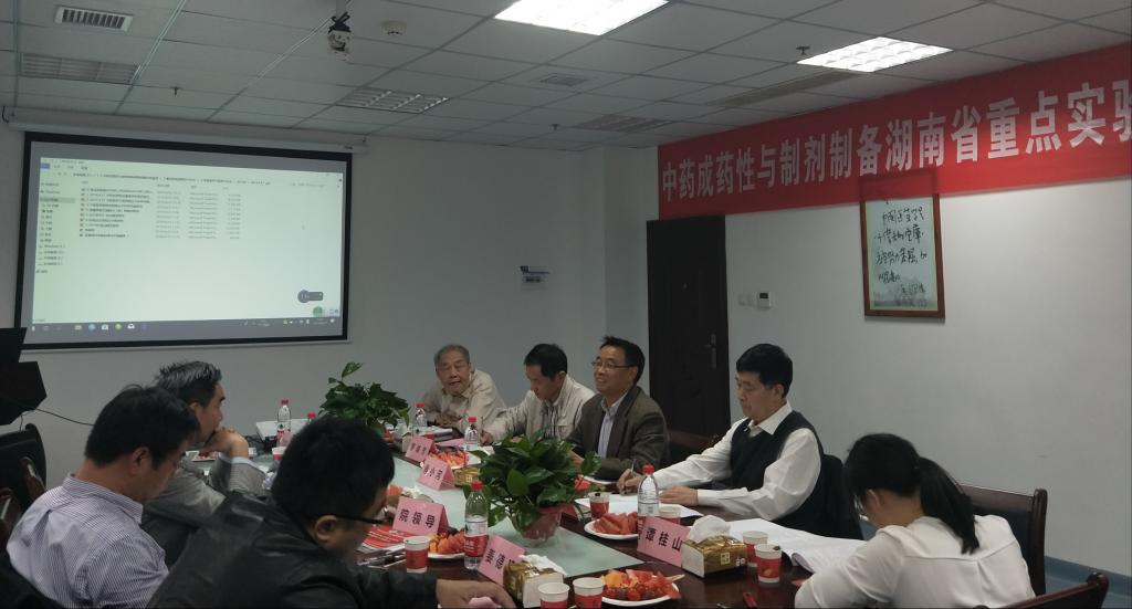 重点实验室主任贺福元教授汇报了重点实验室的两个重大科技成果 “中药有效性定量谱学体系的创立及其应用研究”和“中药药性与药效的超分子科学内涵研究”,请与会专家审议;提出了“组分中药创制”、“金(山)银花产业化关键技术”等5个重点研究方向,征求学术委员会专家意见。学术委员会主席罗杰英教授综合几位专家意见进行了总结发言,专家认为中药成药性与制剂制备湖南省重点实验室2018年的工作业绩令人瞩目,尤其是中药超分子化学与定量药理学为核心的中药成药性与制剂制备研究,独具特色,并对重点实验室接下来的建设提出了几点建议:(1)进一步突出特色,在补阳还五汤组分中药成分与靶点的拓扑网络成药性研究取得成果,为组分中药的成药性研究提供方法学支撑;(2)进一步深入展开金(山)银花“异质等效”的超分子机制研究,为中药品种归属建立方法学;(3)进一步归纳总结以超分子“印迹模板”自主作用特点的理论与研究模式,并尽快推进该理论在中药成药性、制剂制备与质量控制中的应用。(4)积极开展多学科的交叉融合,积极开展技术成果转化,提高实验室发展能力。(5)进一步加强中药现代化创新型人才队伍建设。