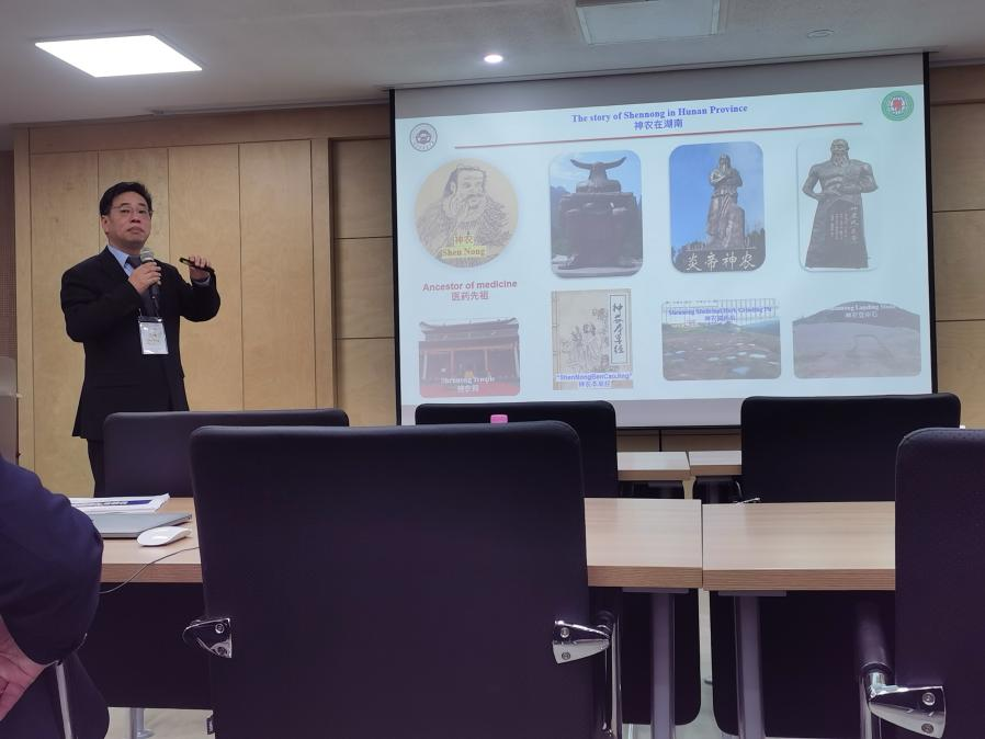 下午,在圆光大学崇山纪念馆召开了以“韩中学术交流的现状和课题”为主题的圆光大学孔子学院十周年纪念共同学术会议。会议由孔子学院中方院长彭彩云和韩方院长姜延锡共同主持,会议在王炜院长的“基于湖南中药和民族药物的天然产物研究”中开始。