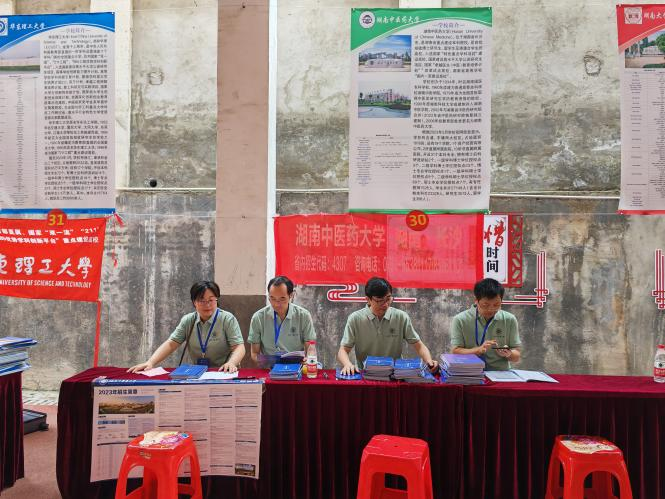 根据大学招生工作的统一安排,促进我们生源质量的不断提高,6月25日至28日,我们围绕学校招生宣传工作的相关要求,整体谋划,认真安排部署,先后深入邵阳市区、新邵县、隆回县等7个地区的多所重点高中设点宣传。