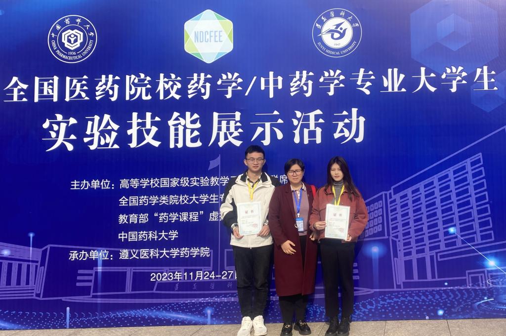 11月25-26日,“第七届全国医药院校药学/中药学专业大学生实验技能竞赛”于遵义医科大学举办。我们选派彭江丽为总教练,林丽美、罗堃、李亚梅、张智敏、刘月新为指导老师,2020级中药学专业豆恩光、药学专业李媚2位同学组成参赛队,最终荣获一等奖1项、二等奖1项。此次大赛为我校首次参加并荣获奖项!