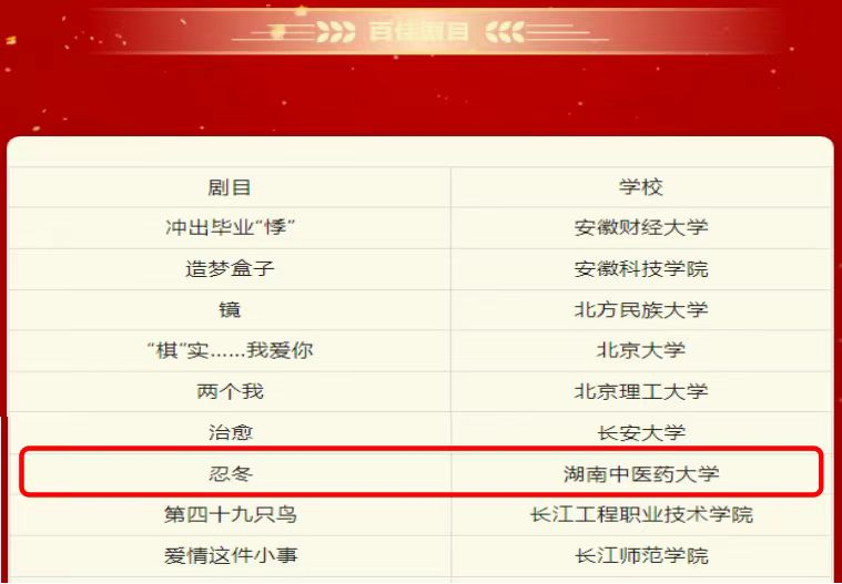 6月13日,中国心理学会心理危机干预工作委员会与国家心理健康与精神卫生防治中心联合主办的第七届全国高校心理情景剧比赛公布评选结果,我们代表学校参赛的情景剧作品《忍冬》喜获全国百佳剧目。该剧目由学院院长王炜和党委副书记贺哲淳担任总顾问,学生管理科李晨婷老师、禹智恒老师担任指导老师。同时,该剧目也收获今年校级心理情景剧大赛一等奖的荣誉。