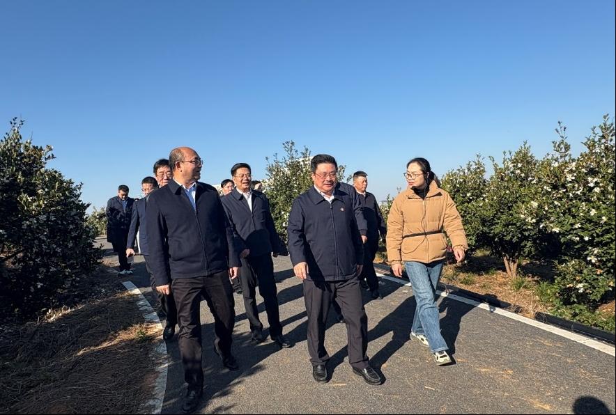 2025年11月19日,我校党委书记戴爱国率调研组赴邵阳县验收我们与邵阳县人民政府共建的“党建引领油茶林下中药材及芳香植物试种科研基地”的阶段性成果,邵阳市委副书记尚生龙、邵阳县委书记袁胜良、邵阳县县长周玉祥陪同调研。