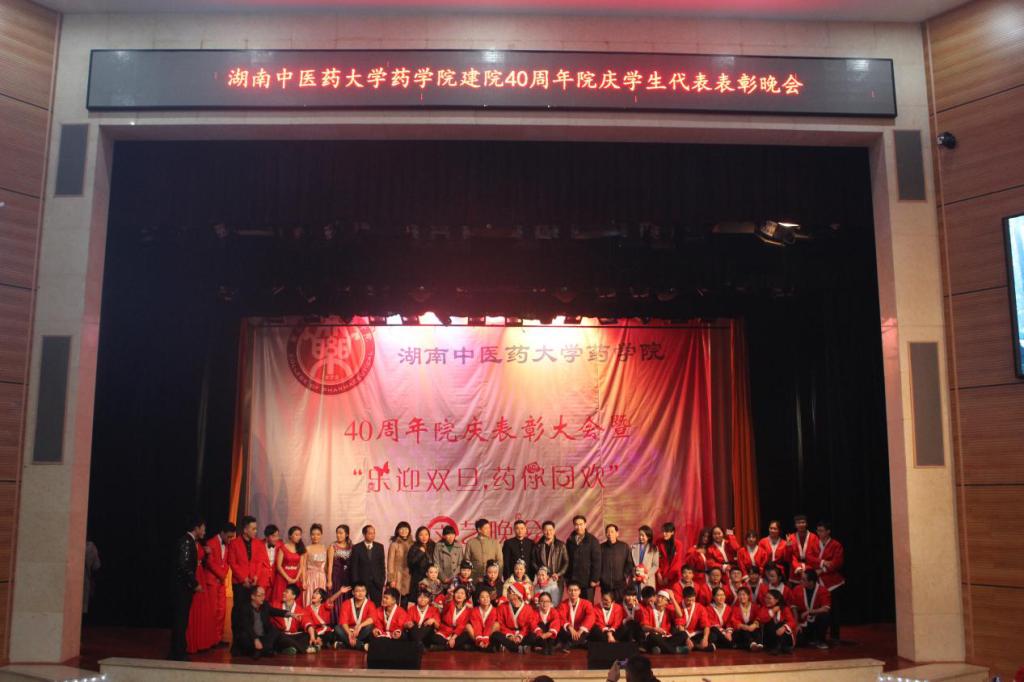 2015年12月23日晚6:30,雷火·竞技40周年院庆表彰大会暨“乐迎双旦,药你同欢”文艺晚会在大学生活动中心隆重举行。雷火电竞官方网站校长廖端芳,副校长葛金文,世东医药有限公司董事长方荣国,学生工作处处长谭琥,保卫处处长姚旭东,校团委书记焦珞珈,学生工作处副处长章小纯,招生就业处副处长曹一瑜,校团委副书记方圆,雷火·竞技原党总支书记陈祥瑞,雷火·竞技党总支副书记、副院长鲁耀邦,雷火·竞技副院长夏新华,雷火·竞技办公室主任黄绍国和雷火·竞技各教研室及学生科全体老师与药院众学子欢聚一堂,彰院庆出色之精英,展药院奋勇之自信,共度良辰美景,共享双旦之乐。
