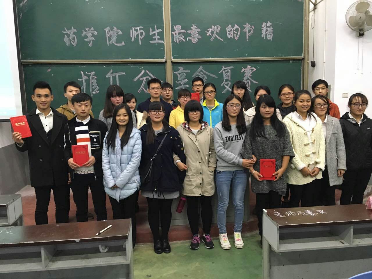 点评结束,主持人公布了本次比赛的结果:一等奖14级中药3班尹华、陈晨、魏雪;二等奖14级中药资源与开发班杨茂蕊、郭金铭、秦子楠,14级药学2班张琨;三等奖14级制药工程班刘小聪、曾韦丹、闫弢,14级中药资源与开发班杨子墨、王宇轩,14级食品科学与工程班王柯远、张天宝。比赛以评委为获奖选手颁奖并合影留念作为结束。